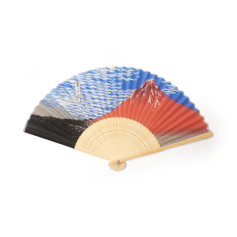 和柄扇子 No.5970 唐木中彫 北斎赤富士