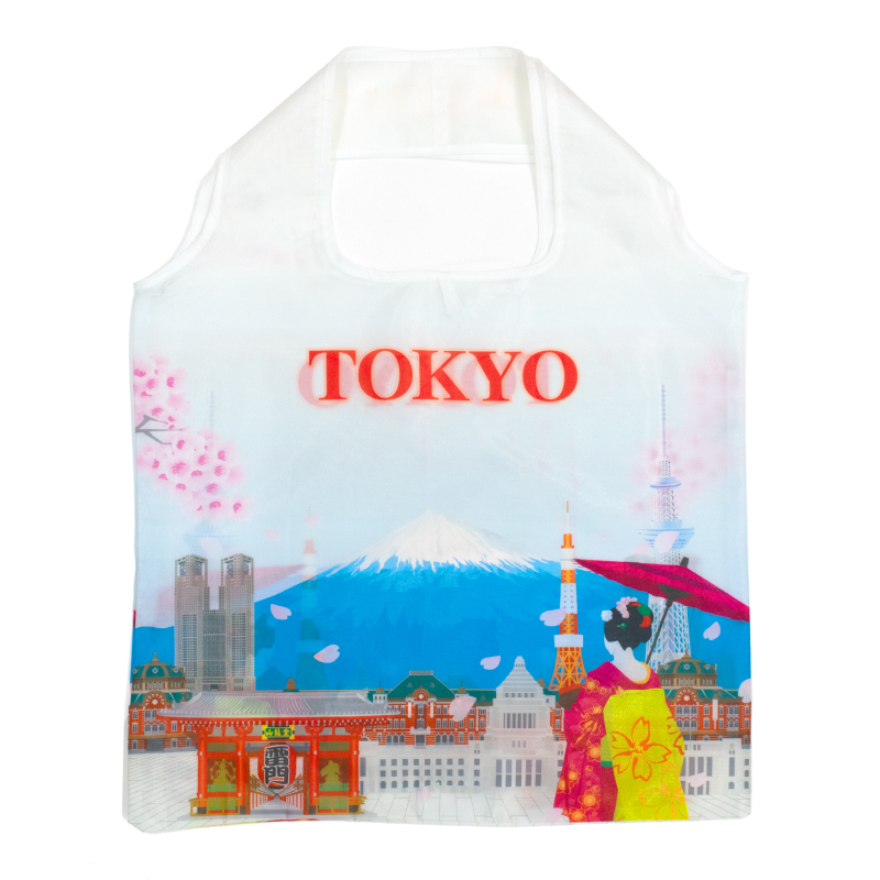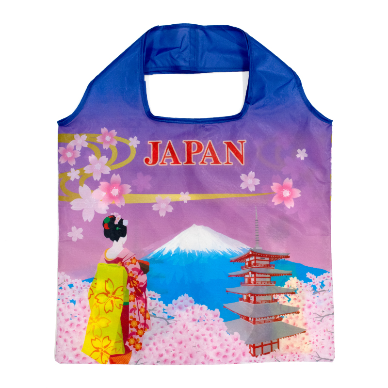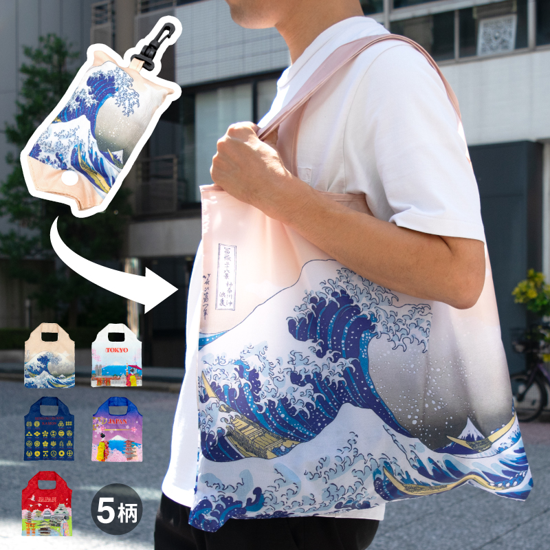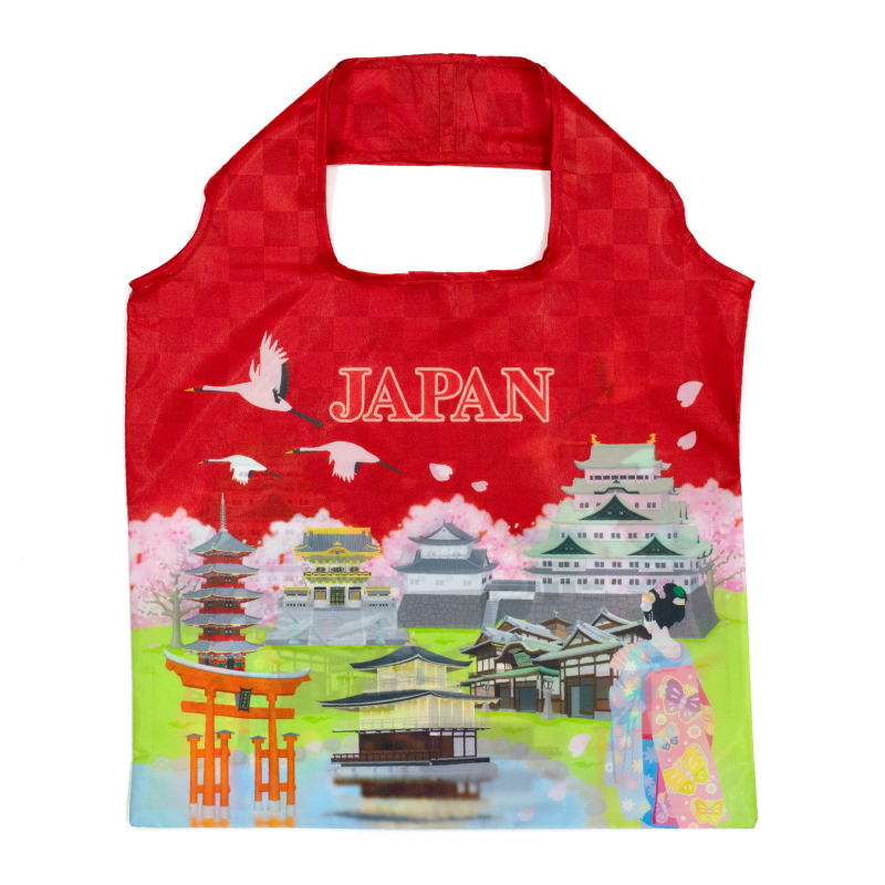Eco-bag printed motifs reminding you of Japan - attached a carabiner to hang it