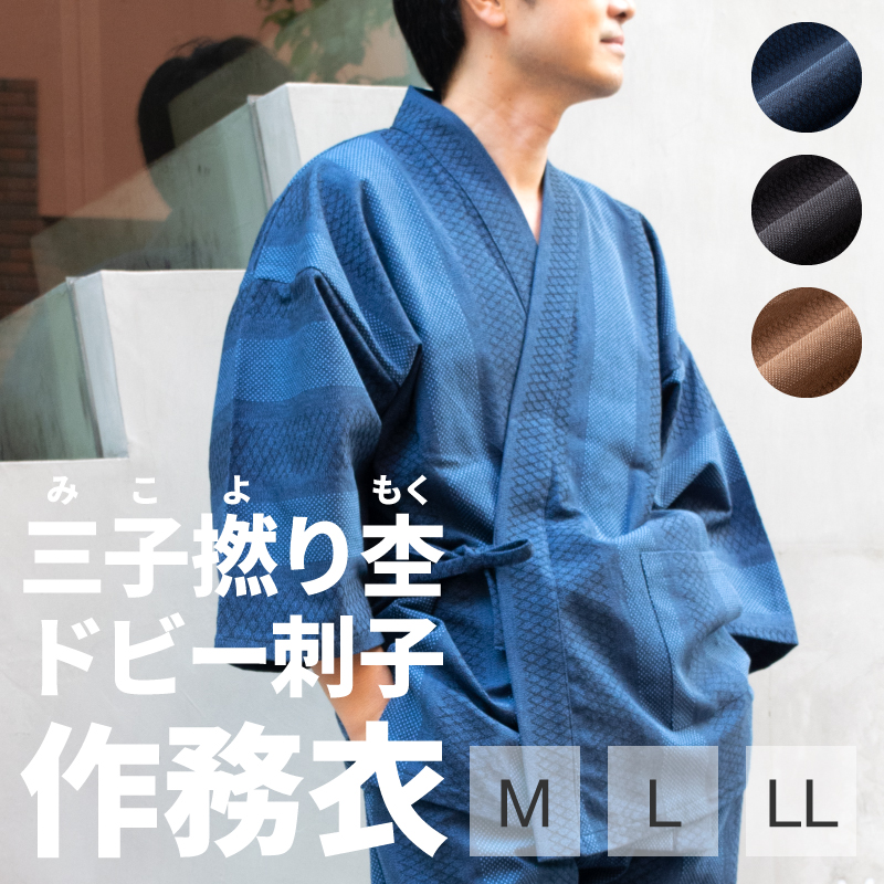 Samue, made of 100% cotton Mikoyorimoku fabric, a traditional Japanese weaving technique.