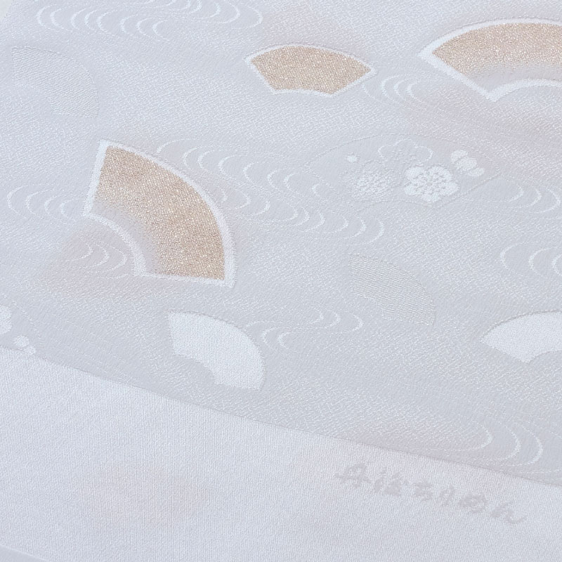 梅、扇、松葉、七宝をメインに鶴、松、竹、流水、熨斗目も加わり、吉祥柄が佳き日を彩ることでしょう。