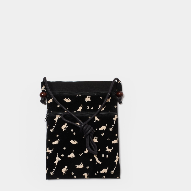 Inden-pattern pochette (longer type): two pockets on the front with pull-up zippers