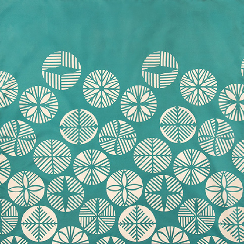 長年愛されている伊砂文様両面に撥水加工をかけ合わせた唯一無二のふろしきは、型絵染特有の手工芸的なぬくもりを持つ文様、大胆に余白を取り込んだ構図、静謐さを纏うシックな色彩。