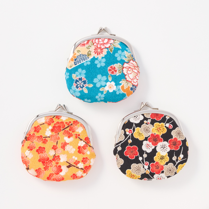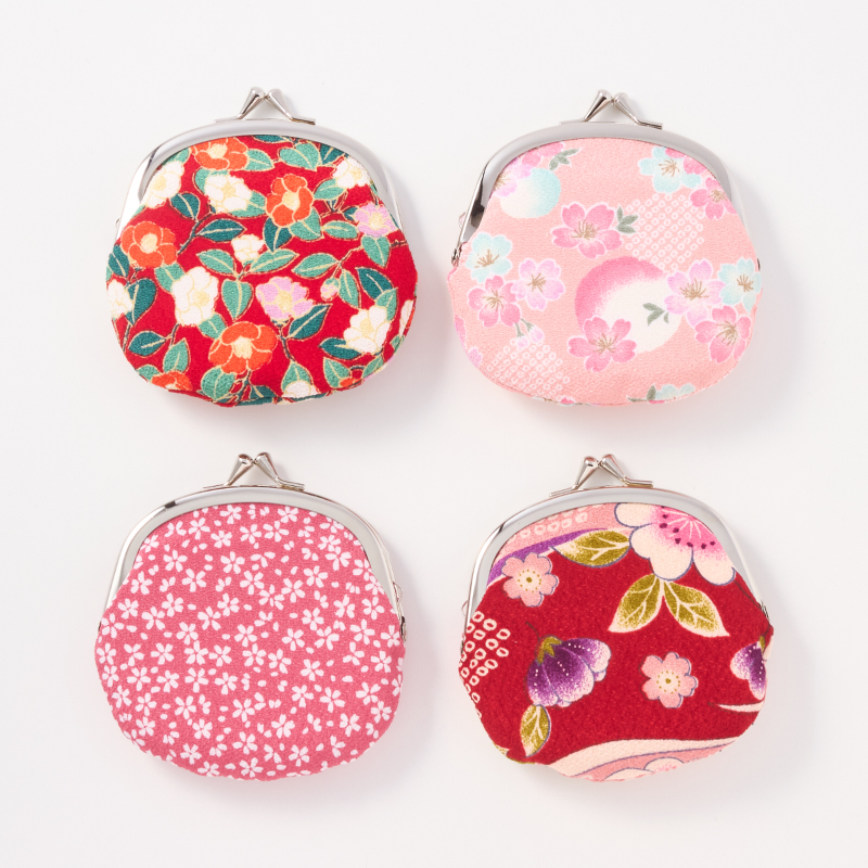 友禅柄が美しい、ちりめん素材のがま口小銭入れ。