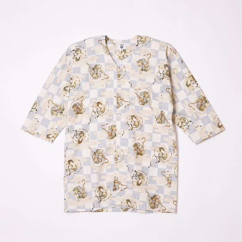 粋な柄がクールなウエダオリジナルの鯉口シャツです - 風神雷神 グレー